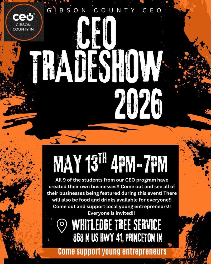 Gibson County IN CEO Class of 2026 is comprised of 9 students. Students are selected from 3 different surrounding schools.